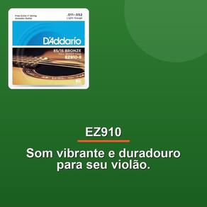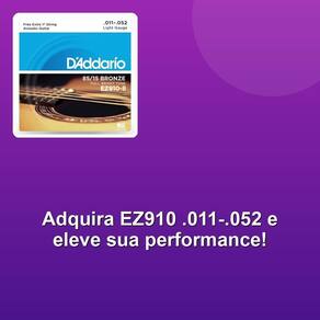 Encordoamento Violao Aco Ez910 .011-.052 Desfrute de um som vibrante e duradouro com o Encordoamento Violão Aço EZ910 .011-.052. As cordas 85/15 Great American Bronze oferecem um brilho incomparável e um sustain prolongado, elevando sua performance musical. Combinando a clareza das 80/20 Bronze com a robustez e longevidade das Phosphor Bronze, este encordoamento garante um desempenho excepcional em cada nota. Sua composição cuidadosamente projetada proporciona uma sonoridade rica e equilibrada, ideal para músicos que buscam excelência. A tensão detalhada das cordas (E .011, B .015, G .024, D .032, A .042, E .052) assegura conforto e precisão, permitindo que você explore todo o potencial do seu violão. Invista em qualidade e transforme sua experiência musical. Desfrute de um som vibrante e duradouro com o Encordoamento Violão Aço EZ910 .011-.052. As cordas 85/15 Great American Bronze oferecem um brilho incomparável e um sustain prolongado, elevando sua performance musical. Combinando a clareza das 80/20 Bronze com a robustez e longevidade das Phosphor Bronze, este encordoamento garante um desempenho excepcional em cada nota.