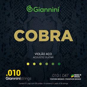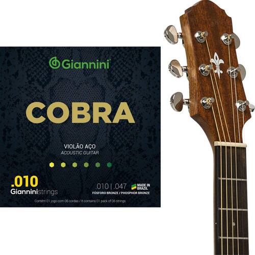 1 Encordoamento para Violão Aço 010 Fósforo Bronze Giannini Cobra GEEFLEF