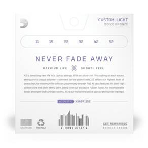 A D Addario XS 80/20 Bronze para violao aço representa o inicio de uma nova era em cordas revestidas. Com seu revestimento ultrafino em cada corda espiralada e tratamento de polímero exclusivo nas cordas lisas, a XS oferece durabilidade extrema com o mais alto nível de protecao, além de um toque surpreendentemente suave. Nossa exclusiva tecnologia Fusion Twist reduz o atrito da corda com o nut, assim você passa mais tempo tocando e menos tempo afinando. O consagrado nucleo NY D'Addario, com alta concentração de carbono, produz resistência e estabilidade de afinação incomparáveis. XS e a corda revestida mais inovadora ja criada.?