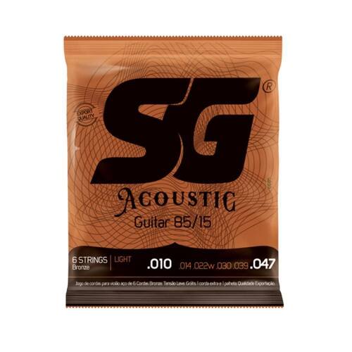 as cordas de tensão light são ideais para músicos que não utilizam muita pressão nas mãos ou que prefiram uma sonoridade mais quente, porém suave. Em solos ou palhetadas, o timbre é sempre limpo e contagiante, seja qual for o estilo musical. Encordoamento que, além de um equilíbrio sonoro sensacional, traz a verdadeira sensação do folk. Com timbre quente e brilho enriquecido, a linha 85/15 traz a matéria-prima mais equilibrada em questão de durabilidade, conforto e som dentre as usadas para instrumentos acústicos. Medidas para uso em escala com comprimento de 25 polegadas e meia / 648mm. Cordas primas em aço estanhado cilíndrico. Bordões com revestimento de bronze 85/15 e núcleo hexagonal de aço estanhado. Especificações: marca: sg tipo: violão 6 cordas calibre: 010 - 047 tensão: light material: bronze 85/15