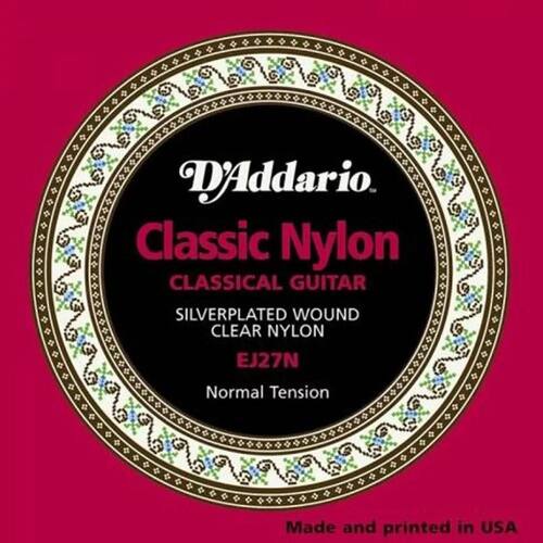 Encordoamento Violão Daddario Ej27 N As cordas EJ27 N Classic Nylon de D'Addario são ótimas para principiantes, estudantes e profissionais. Este conjunto de tensão normal contém 3 cordas de nylon transparente e 3 cordas de cobre banhado a prata para o equilíbrio ideal de tom quente e projetado, duradouro. Caracteristicas Gerais - Marca: Daddario - Modelo: Ej27 N - Material: Nylon - Ideal para violões - Quantidade de cordas: 6 - Espessura: 0,29 Itens Inclusos 01 - Encordoamento Violão Daddario Ej27 N Media Nylon Ean: 0019954951139
