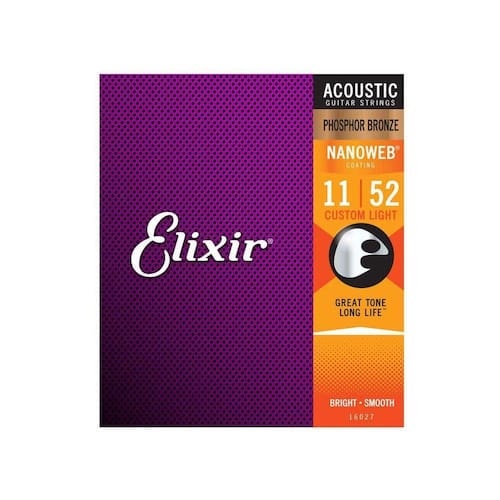 Encordoamento Violão Elixir Phosphor Nanoweb 011 052 16027 Consideradas pioneiras na tecnologia de cordas revestidas, as cordas Elixir® Strings estão disponíveis em várias medidas para violão aço, guitarra, baixo, banjo e mandolim. Elixir® Strings possuem um timbre de alta qualidade e músicos nos relatam que seu timbre dura mais do que o de qualquer outra corda, sem ou com revestimento. Elixir® Strings são as cordas de violão numero um nos E.U.A. Elas proporcionam ao seu violão um timbre que músicos nos relatam durar mais do que qualquer outra corda, sem ou com revestimento. Especificações: 1º Corda MI: .011 2º Corda Si: .015 3º Corda Sol: .022 4º Corda Re: .032 5º Corda La: .042 6º Corda MI: .052 Características gerais: - Modelo: 16027 - Tipo: Encordoamento para violão - Número de cordas: 6 - Tensão: 0.11 - Material: Phosphoro Bronze Conteúdo da Embalagem: - 01 Encordoamento com 06 cordas