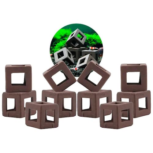 Características: Embalagem com 5 cubos individuais Decore como quiser, os cubos são soltos, podendo criar abrigos incríveis para peixes pequenos e camarões Atóxico Totalmente seguro Durável Lavável Enfeite moderno Espaço interno vazado Serve de abrigo para peixes Não altera o PH da água Fácil limpeza Fabricação manual, pode ter pequenas diferenças na cor e tamanho