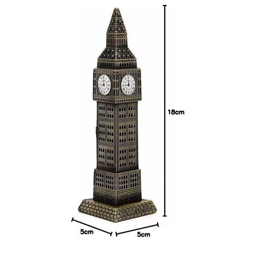 Miniatura Torre Big Ben Londres Metal 18Cm London Relógio Uma linda Peça Decorativa para Salas e Escritórios e uma excelente opção de presente para quem você ama - Altura: 18 cm - Largura Base: 5 cm - Diâmetro do Relógio de enfeite: 1,8 cm - Material: Metal O relógio é apenas enfeite - Não funciona