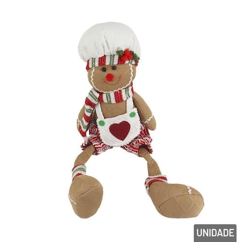 Enfeite Biscoito Cozinheiro Pernas Longas 67, Adicione um toque de charme e diversão à sua decoração natalina com o Enfeite de Biscoito Cozinheiro de Pelúcia! Com 67,5cm de altura, este adorável enfeite apresenta um Biscoito em estilo cozinheiro, perfeito para evocar o espírito festivo da temporada.\nConfeccionado em pelúcia macia, o biscoito possui pernas longas que conferem um toque lúdico e animado, tornando-o uma peça encantadora para exibir em qualquer espaço da casa. Seus detalhes coloridos e expressivos trazem um ar alegre e acolhedor, ideal para decorar mesas, prateleiras ou até mesmo a árvore de Natal.\nDeixe a magia das festas natalinas entrar em sua casa com este simpático biscoito cozinheiro de pelúcia!\nEspecificações:\nMarca : BELA FLOR\nTipo de material : Pelúcia, Poliéster\nCores ou Estampa : Colorido\nDimensões do Produto : 67,5 X 19,5 X 11 CM\nDimensões da Embalagem : 67,5 X 19,5 X 11 CM\nPeso Bruto (Gramas) : 0.514 Marca: Não Informado
