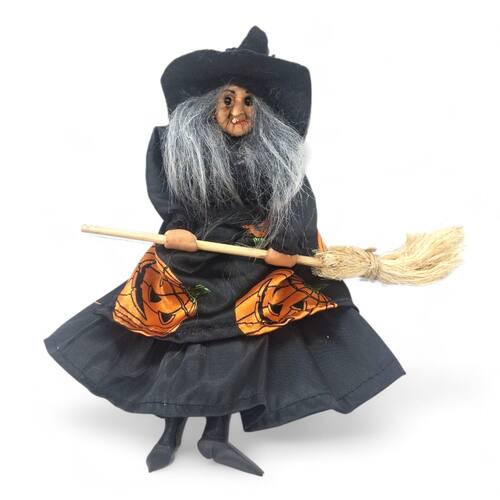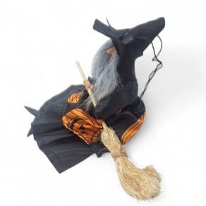 Enfeite Bruxa com a Vassoura para Pendurar de Abóbora 23 cm