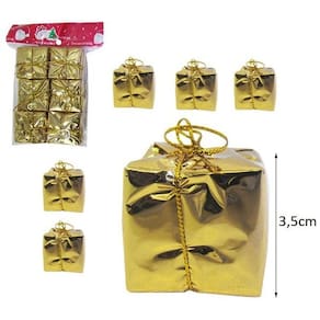 Enfeite Caixinha de Presente Dourado 3,5cm C 6pcs