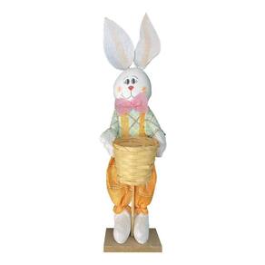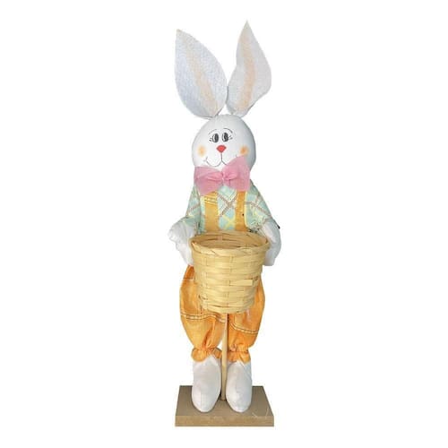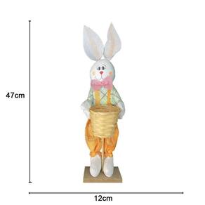 Enfeite coelho em pé com cesta cachepot de páscoa composição: mdf, tecido e palha medidas: 47 x 12 cm embalagem com 01 unidade. Coelho com suporte em pé na mesa atenção: imagem meramente ilustrativa. Pode ocorrer mudanças no tom da cor para o produto real. Marca: BPG