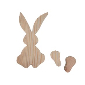Enfeite Coelho em Pinus com pés de aplique 13x24,7- Jeito Próprio Artesanato -