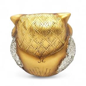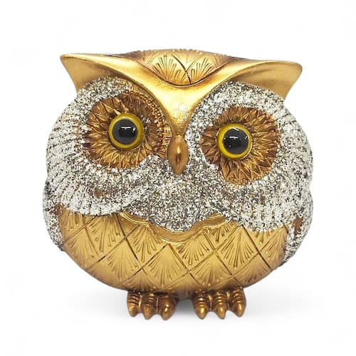 Enfeite Coruja da Sabedoria Resina Dourada com Brilho 10 cm
