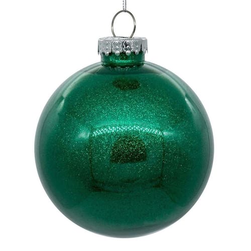 3" — Espuma do mar — Glitter — Transparente — Bola — Inquebrável | Enfeite de árvore de Natal Vickerman (pacote com 12)