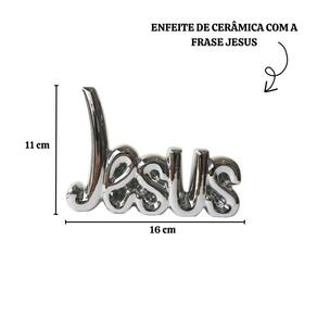 ENFEITE DE CERÂMICA COM A FRASE JESUS 11X16CM - GDR0162.