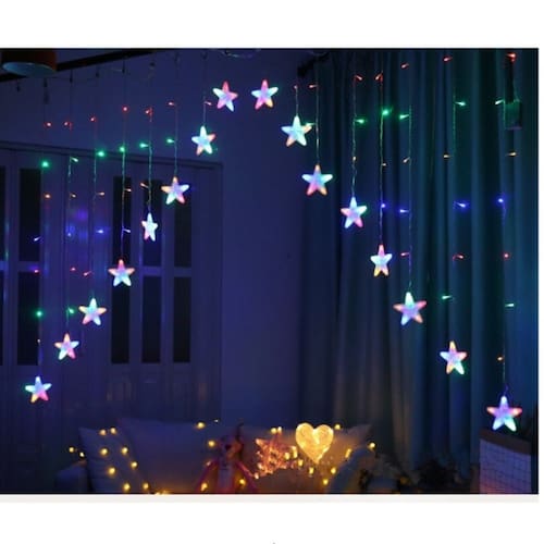 NOTA: LA LIGHTING ESTA PUBLICAÇÃO É MULTICOLORIDA. A decoração ideal para este Natal chegará à sua casa. Inclui plugue para extensão de luzes, controle e controle intermitente de luzes. A conexão para estendê-la é anti-água. Nota: não inclui som. CARACTERÍSTICAS DO PRODUTO - Comprimento multicolorido: 3 metros - Número de luzes. 136 luzes - Terminação: estrelas CONTEÚDO DA COMPRA - Cortina de luz tipo pinho (com estrelas) OKSHOP
