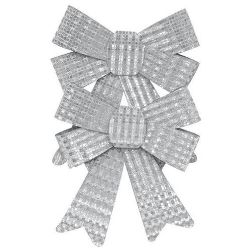 Enfeite De Natal 2 Laços Prata Para Arvore/Mesa/Porta 12Cm