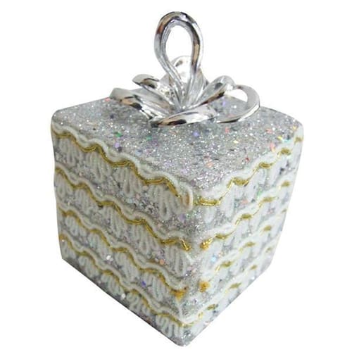 Enfeite De Natal Caixa Pequena Prata Arvore/Mesa/Porta 06Cm
