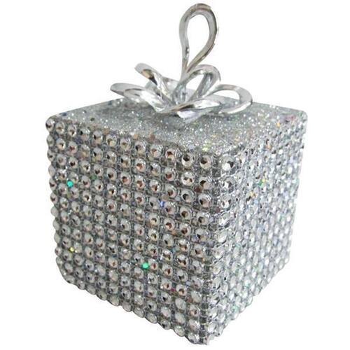 Enfeite De Natal Caixa Pequena Prata Arvore Natal 08Cm