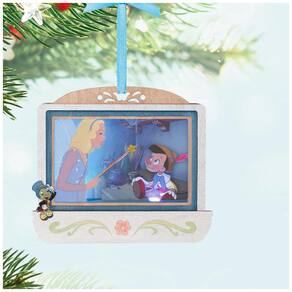 Marca: Hallmark Keepsake Tema: Pinocchio 85th Anniversary Material: madeira, papel e plástico Dimensões: 10,2 cm x 11,4 cm x 3,2 cm Peso do produto: aproximadamente 100 g Peso do pacote (produto + embalagem): aproximadamente 150 g Alimentação: 3 baterias LR44 (inclusas) Montagem: pendurar Designer: Gregor Benedetti Ano: 2025 Uso: decoração natalina, colecionável, presente exclusivo Disney