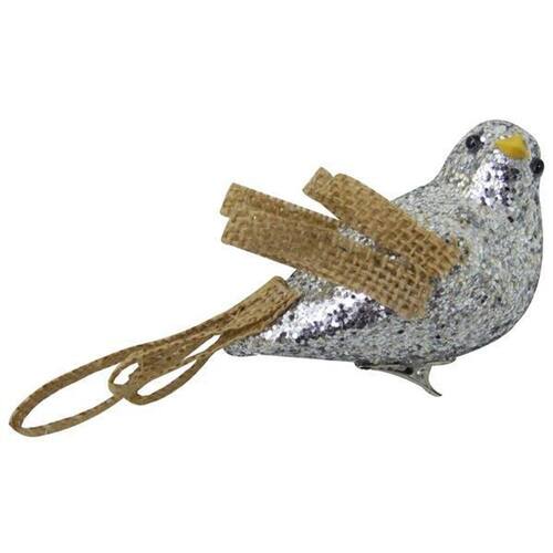 Enfeite De Natal Passaro Prata Arvore/Mesa/Porta 14Cm