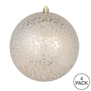 Enfeite Vickerman de 6" Champagne Crackle Ball — 4 por bolsa — Confiável e durável — Boné perfurado e com arame — Textura divertida — Decorações festivas de Natal brancas