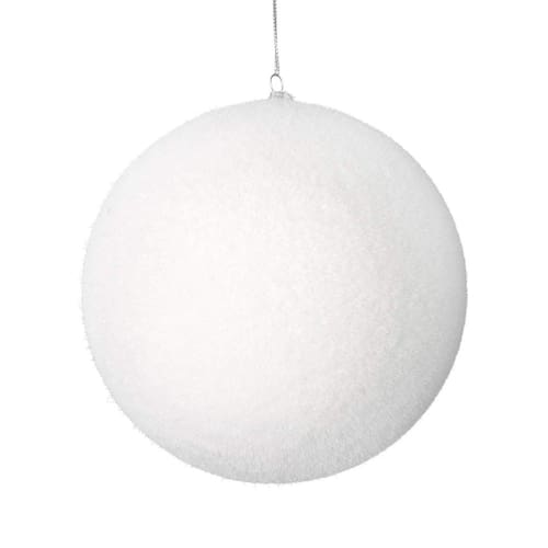Enfeite de Natal Vickerman de 8", bola flocada, acabamento branco flocado, plástico inquebrável, decoração de árvore de Natal natalina — o plástico inquebrável durará por muitos anos. Seguro para crianças e animais de estimação
