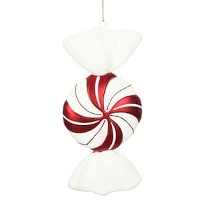 Enfeite de Natal Vickerman de 12" Round Swirl Candy, vermelho-branco. Complete sua coleção de enfeites de Natal com este enfeite festivo de doces de hortelã. Este ornamento é feito de plástico inquebrável e apresenta um padrão de espiral vermelho e branco. É o perfeito