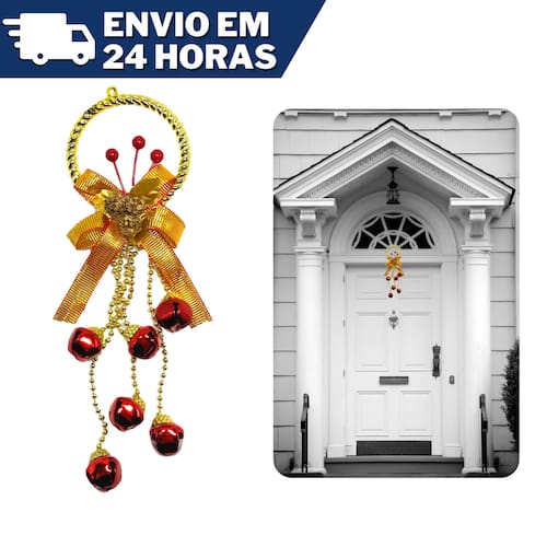 Com guizos, na parte inferior, este enfeites é ideal para decorar na data mais esperada do ano.