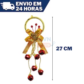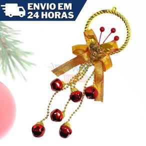 Enfeite de Pendurar Guizo com Laço Decorativo Natal 27cm