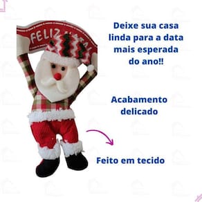 Características: - Material: Algodão PP, poliéster e EVA - Medidas: 41 x 24,5 cm - Conteúdo da embalagem: 1 enfeite de porta Papai Noel Ean: 7908573406256