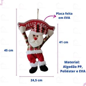Características: - Material: Algodão PP, poliéster e EVA - Medidas: 41 x 24,5 cm - Conteúdo da embalagem: 1 enfeite de porta Papai Noel