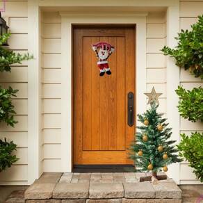 Enfeite Porta Papai Noel Xadrez Decoração Placa Feliz Natal