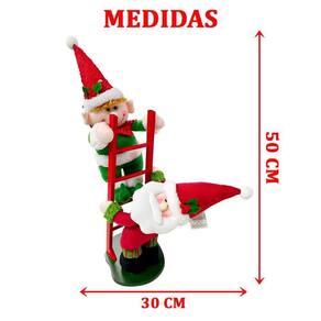 1 ;Decoração Enfeite De Natal Papai Noel E Elfo Na Escada 50cm;