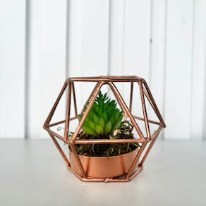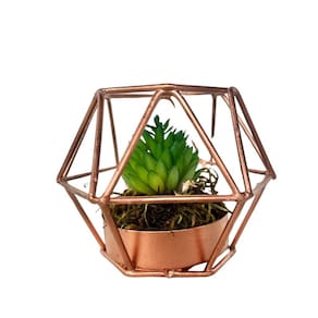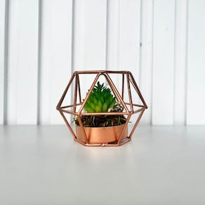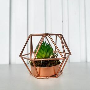 Decoração artesanal sala quarto vaso vazado diamante geométrico de metal forjado aramado rose gold.
