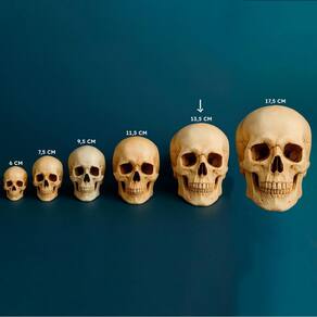 Enfeite Decorativo Cabeça Crânio Caveira Realista Extra Grande 13CM Presente Halloween Anatomia Óssea Destaque sua decoração com os Enfeites de Crânio Humano em Resina - peças que combinam realismo, acabamento refinado e versatilidade para diversos ambientes. Ideais para composições góticas, temáticas de Halloween, vitrines criativas, consultórios alternativos ou até mesmo como objeto de estudo decorativo. Produzidos em resina de alta qualidade, esses crânios impressionam pelo nível de detalhe, inclusive nas versões menores. São perfeitos para composições individuais ou em série. A coloração bege fosca simula ossos reais, oferecendo um visual impactante com toque artesanal. Benefícios: Alta fidelidade anatômica, mesmo nos modelos menores Acabamento detalhado e resistente Ideal para ambientes temáticos, Halloween ou consultórios Produto leve, durável e fácil de posicionar Especificações Técnicas: Material: Resina Cor: Bege única Tamanho: Altura: 13,5cm / Largura: 6cm / Comprimento: 15,5cm Acabamento: Detalhado artesanal : 90 dias para defeitos de fabricação Cuidados e Conservação: Limpar com pano seco Evitar exposição direta à umidade extrema Manter em ambiente arejado para preservar o acabamento Garanta já o seu Decore com personalidade, impacto visual e qualidade superior. Cada peça é única e feita para impressionar.