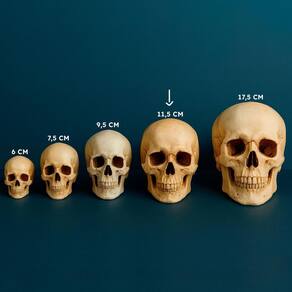 Enfeite Decorativo Cabeça Crânio Caveira Realista Grande 11CM Presente Halloween Anatomia Óssea Destaque sua decoração com os Enfeites de Crânio Humano em Resina - peças que combinam realismo, acabamento refinado e versatilidade para diversos ambientes. Ideais para composições góticas, temáticas de Halloween, vitrines criativas, consultórios alternativos ou até mesmo como objeto de estudo decorativo. Produzidos em resina de alta qualidade, esses crânios impressionam pelo nível de detalhe, inclusive nas versões menores. São perfeitos para composições individuais ou em série. A coloração bege fosca simula ossos reais, oferecendo um visual impactante com toque artesanal. Benefícios: Alta fidelidade anatômica, mesmo nos modelos menores Acabamento detalhado e resistente Ideal para ambientes temáticos, Halloween ou consultórios Produto leve, durável e fácil de posicionar Especificações Técnicas: Material: Resina Cor: Bege única Tamanho: Altura: 11,5cm / Largura: 8cm / Comprimento: 13,5cm Acabamento: Detalhado artesanal : 90 dias para defeitos de fabricação Cuidados e Conservação: Limpar com pano seco Evitar exposição direta à umidade extrema Manter em ambiente arejado para preservar o acabamento Garanta já o seu Decore com personalidade, impacto visual e qualidade superior. Cada peça é única e feita para impressionar. Marca: Não Informado Ean: 7898723833219