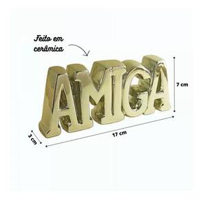 ENFEITE DECORATIVO DE CERÂMICA COM A FRASE AMIGA 17X7CM - HD80715.