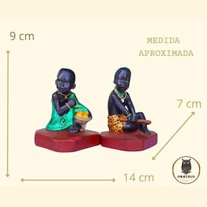 - Fotos feitas com iluminação de estúdio e meramente ilustrativas, portanto, os acessórios utilizados nas fotos não acompanham o produto Enfeite Dupla Garotos Africanos. Portanto, as cores podem variar de tons e intensidade porque as telas de visualização possuem configurações diferentes.