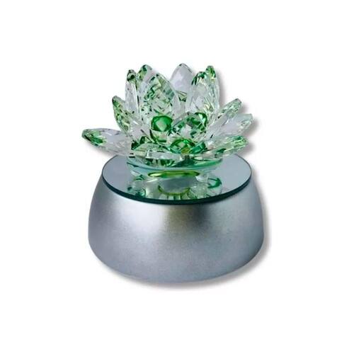 Enfeite Escultura de Vidro Flor de Lotus de 13CM Com Base Espelhada Led RGB Enfeite de Cristal Cor: Verde Flor de lótus cristal de vidro .