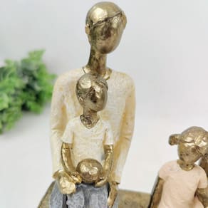 Enfeite Estatua Familia Casal 2 Filhos 22X17X8Cm No Banco