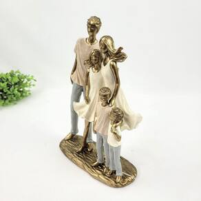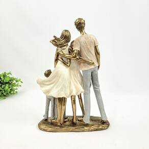 Enfeite Estátua Família Com 3 Filhos 25cm Dourado