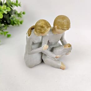 Enfeite Estátua Família Com Bebê 10X10X8Cm Cinza Barroco