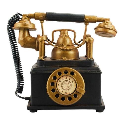 Enfeite decorativo em forma de um telefone de disco com 18 x 10 x 21 cm de dimensão, detalhes e cores muito realista. Material: metal; Atenção: este produto tem apenas função decorativa, não é um brinquedo e nem um telefone de verdade! Informação Adicional Código AT2004B-2648-M Peso (Kg) 0.62 Altura (cm) 18.00 Largura (cm) 21.00