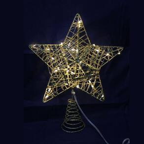 Enfeite Estrela Ponteira Aramada 30 Leds Warm - Chibrali - Crie um Natal inesquecível com a Estrela Ponteira Chibrali! Com seu design elegante e luz quente, esta estrela é o toque final perfeito para sua árvore de Natal. Fácil de instalar e com alta durabilidade, ela é a escolha ideal para quem busca praticidade e qualidade. Código: 103630 Dimensões aprox. da embalagem em cm: 6x20x22 Peso liq. Aproximado do produto na embalagem: 152g Referência do modelo: 28006 Conteúdo da embalagem: 01 unidade Composição/material: 20% metal, 80% plástico Garantia: 90 dias contra defeitos de fabricação pelo fabricante. Imagens meramente ilustrativas. As cores e tonalidades podem variar. Tema - Criativa Meninas Meninos Natal Cor - Dourado Material - Metal Plástico