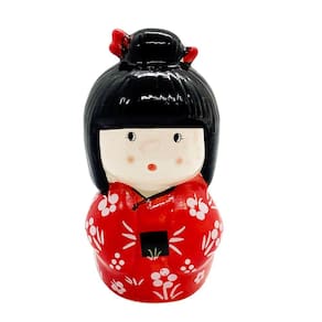 Enfeite Japonesa Cerâmica Kokeshi Vermelha cuidado do Lar