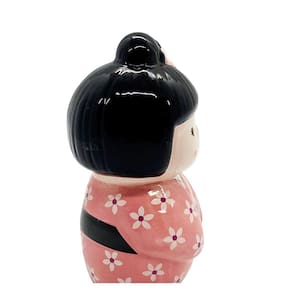 Enfeite decorativo de cerâmica no formato de boneca japonesa Kimono Kokeshi Estátua