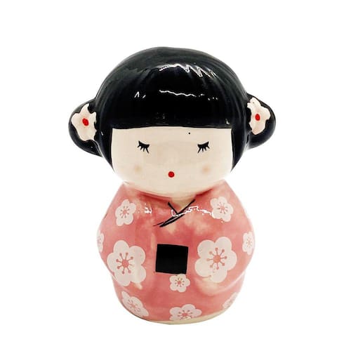 Enfeite decorativo de cerâmica no formato de boneca japonesa Kimono Kokeshi Estátua