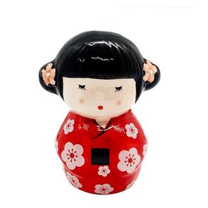 Enfeite decorativo de cerâmica no formato de boneca japonesa Kimono Kokeshi Estátua