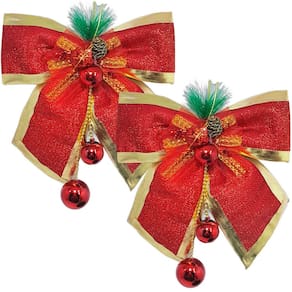 Enfeite Laços Natalino Com Bolas Vermelho Pendente Kit 4pçs -