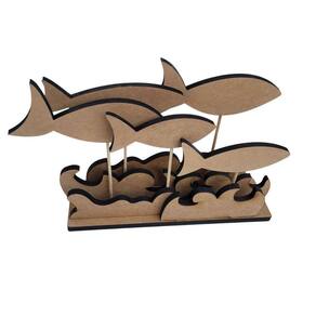 Enfeite de Mesa com cardume de peixes e ondas decor para tema náutico. Acompanha base com furos para encaixar as ondas e os peixes c/palitos. feito em MDF robusco de 9mm cortado a laser com precisão;