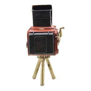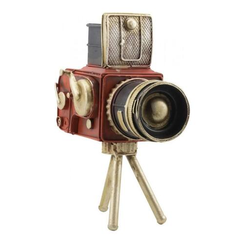 Enfeite decorativo no formato de uma filmadora vermelha com tripé e 22.5 cm de altura. Possui uma caixinha no topo que serve como porta objeto. Produto exclusivamente com função decorativa. Material: metal Código AT1704B-2060-E Peso (Kg) 0.54 Altura (cm) 22.50 Largura (cm) 10.00 Comprimento (cm) 19.00