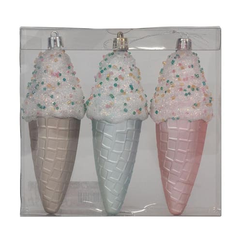 enfeite p/pendurar sorvete azc/roc/lil jg c/3 pc - Embalagem de Venda: JG C/3 PC - Cor Predominante: AZUL CLARO / ROSA CLARO / LILAS - Instruções de Limpeza: Limpar apenas com pano macio e seco - Categoria: Natal